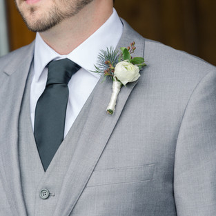 The flowers comprised baby's breath, dusty miller, seeded eucalyptus, purple freesia, white fuji mums, white ranunculus, lavender roses (Ocean Song), white snapdragon, blue thistle, white tulips & blue veronica flower.